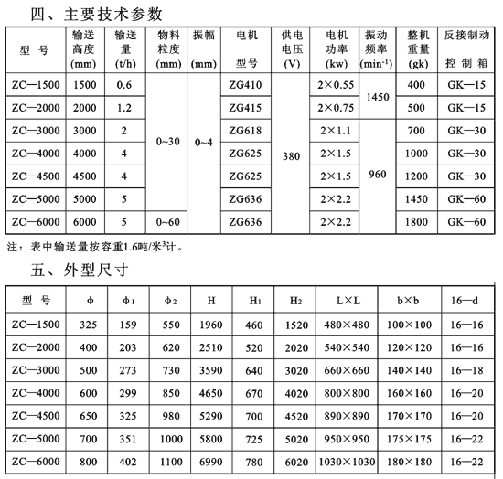 (2)封閉型(ZC--口F)為封閉輸送槽結構,用于對物料有防塵要求的場合向上(或向下)輸送作業。