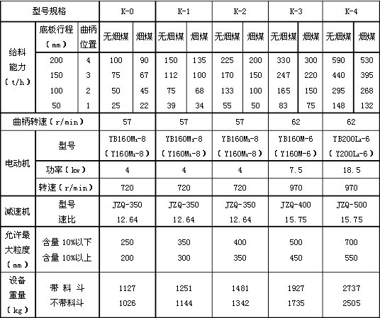 K型往復(fù)式給煤機的技術(shù)參數(shù)